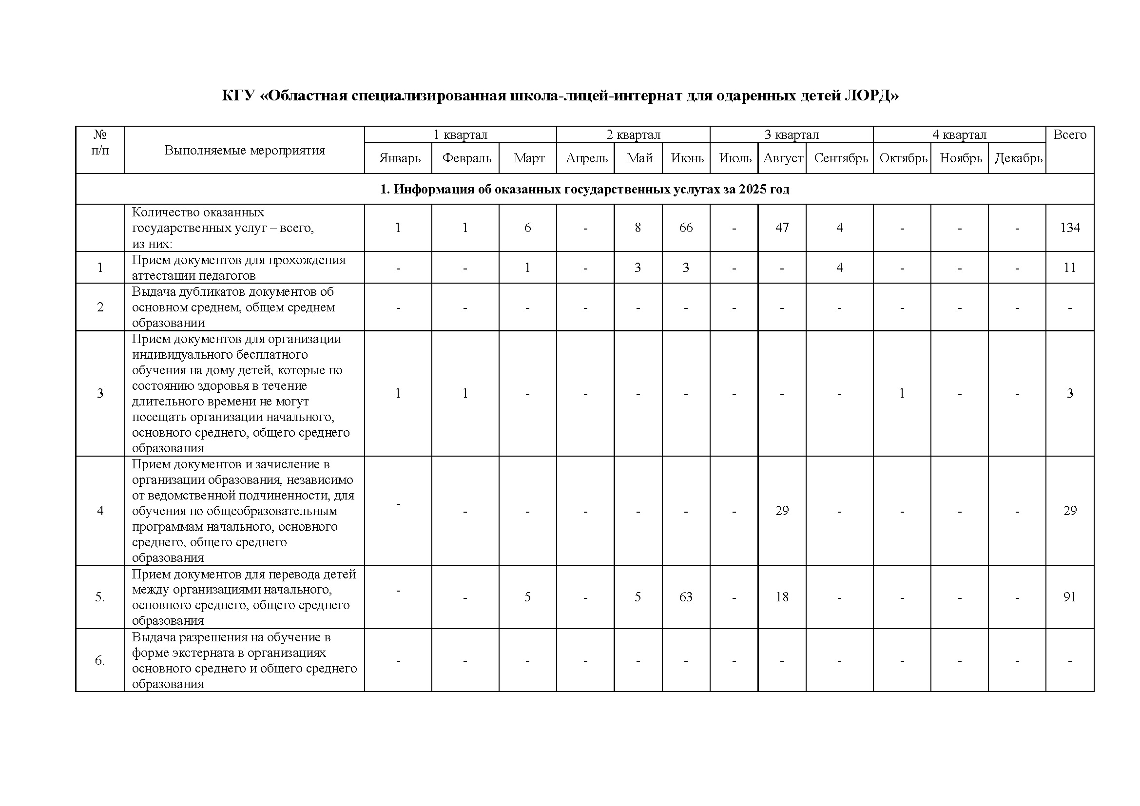 - Оказанные государственные услуги за 2025 год