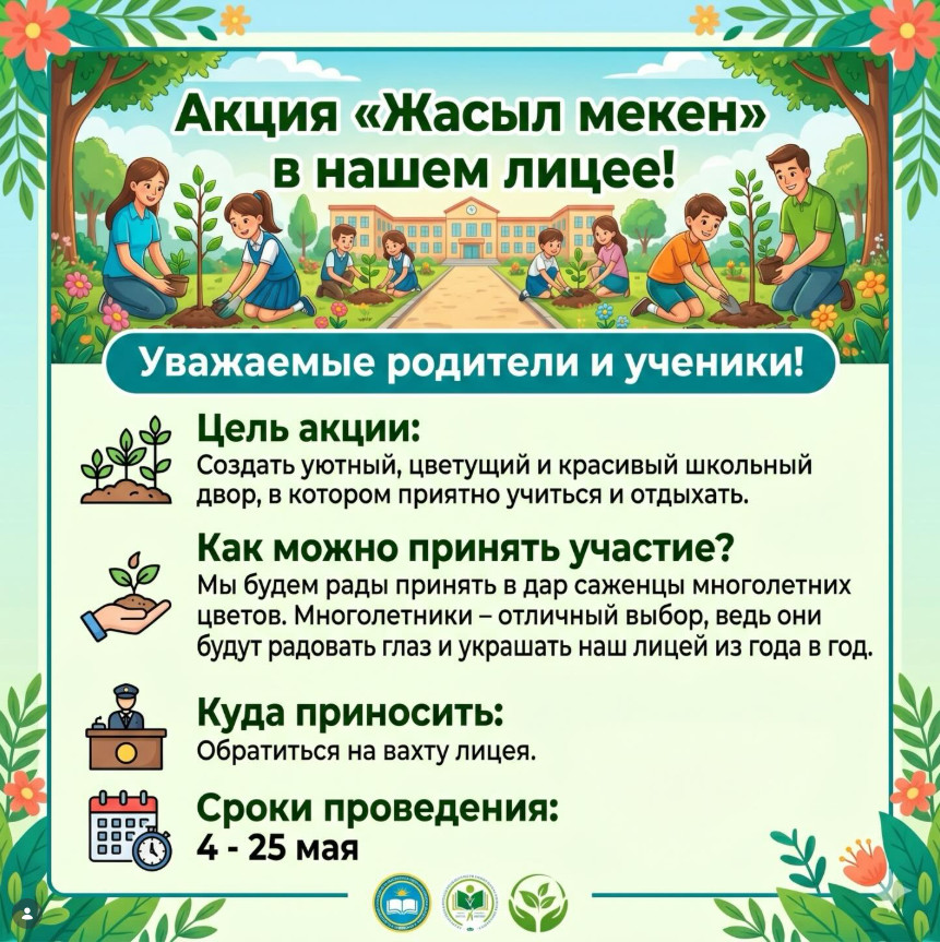 Цель акции - сделать территорию нашего лицея более уютной, зелёной и красивой. Мы хотим вместе создать цветущий школьный двор, в котором будет приятно учиться и проводить время.