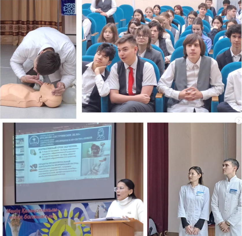 19 желтоқсанда кәсіптік бағдар беру жұмысы аясында 9-сынып оқушылары Жұмағали Тлеулин атындағы Солтүстік Қазақстан жоғары медициналық колледжінің және Жоғары құрылыс-экономикалық колледждің өкілдерімен кездесу өткізді.