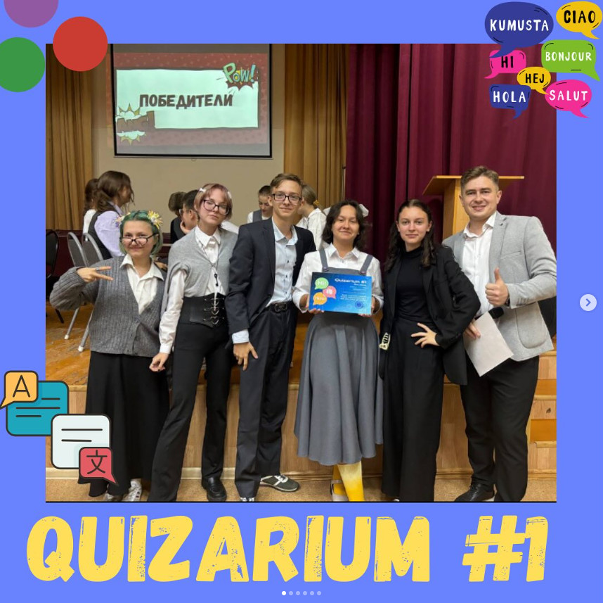 19 сентября в лицее стартовал новый сезон интеллектуальных игр Quizarium. Первая игра была посвящена языкам. Побороться за звание самых эрудированных, догадливых и сообразительных пришли 10 команд. Более 50 ребят с 8 по 11 класс в течение двух часов в неформальной обстановке решали различные текстовые, музыкальные, графические и иные задания, связанные с языковой тематикой. В результате очень напряжённой борьбы места распределились следующим образом: