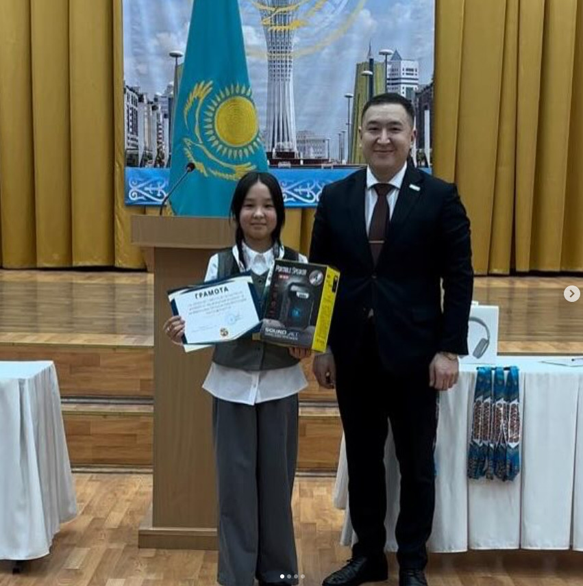 Поздравляем ученицу 5а класса Канафину Жасмин с победой на областном конкурсе «Моя малая Родина». Конкурс был организован МОО «Молодежный Маслихат СКО» с целью формирования патриотизма и интереса к изучению родного края среди школьников. Выражаем благодарность руководителю - Данияровой Р.Ж.!