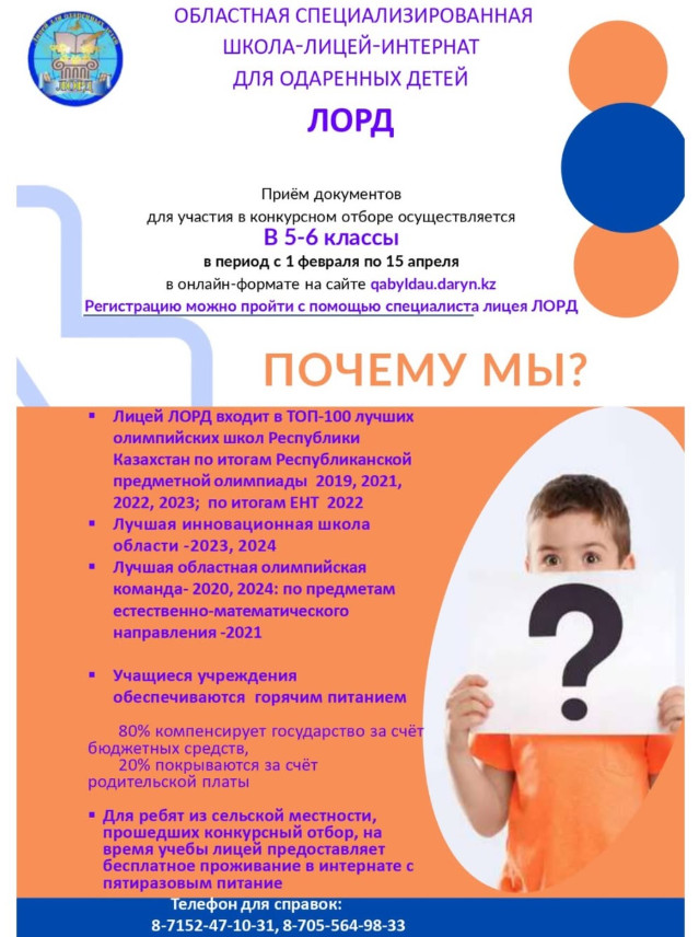 Регистрация документов для участия в конкурсном наборе в 5-6 классы завершается 15 апреля. Крнсультация по набору осуществояется по телефону 8-7152-47-10-31