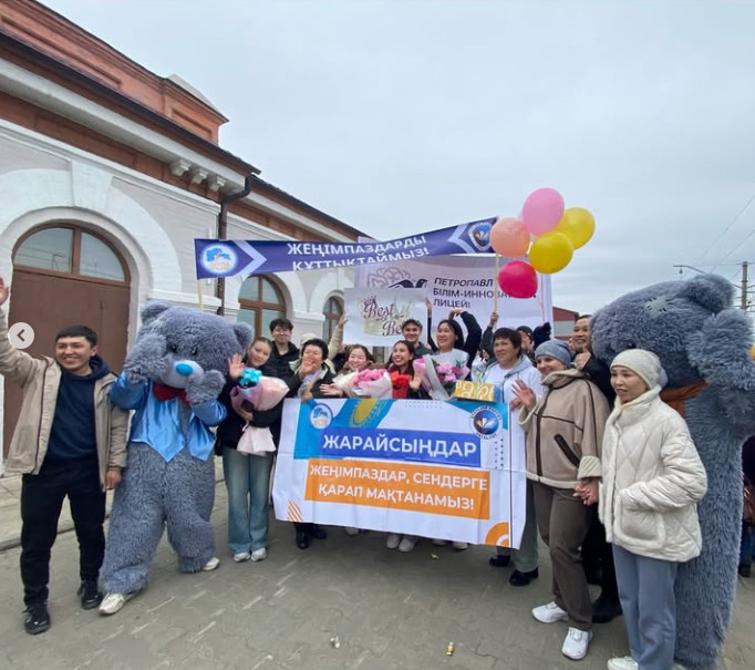 Сегодня учащиеся и педагоги лицея торжественно встретили победителей и участников республиканской предметной олимпиады