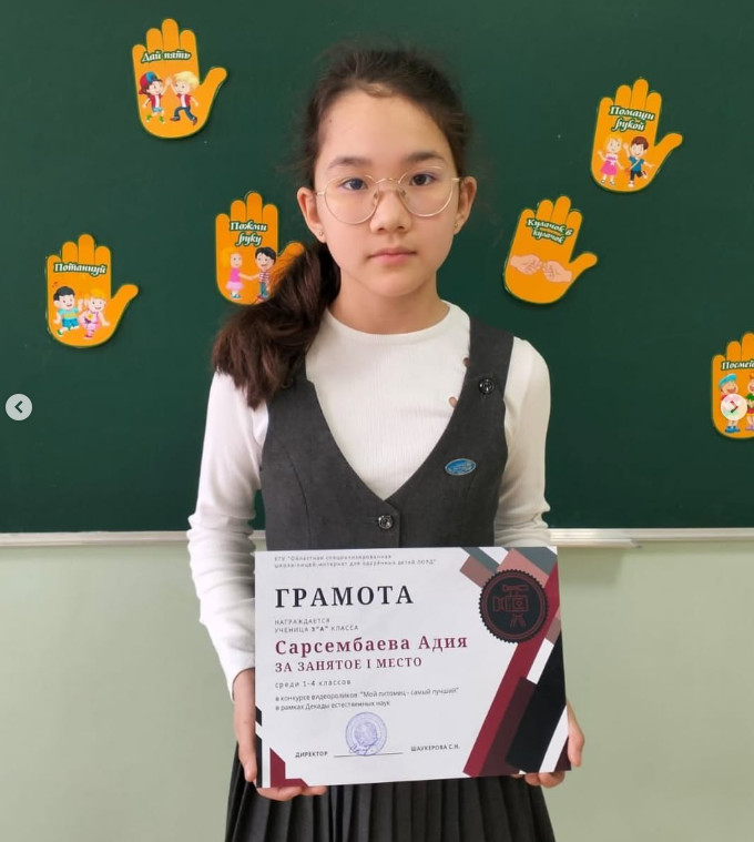 В рамках декады естественных наук в лицее проходил конкурс видеороликов «Мой питомец — самый лучший». Цель конкурса: пропаганда бережного и чуткого отношения к домашним животным. Учащиеся должны были проявить креатив, навыки монтажа и создать интересный видеоролик о своём питомце. Призёрами конкурса по сумме баллов стали: Науменко Вероника (6«А»), Сарсембаева Алия (3«А»), Жанабаева Алина (6«Б»).