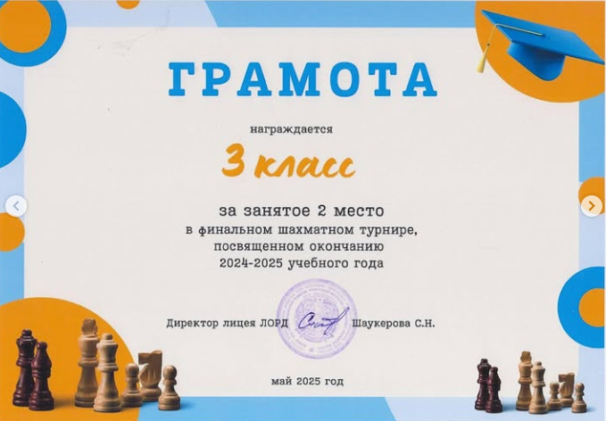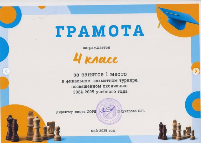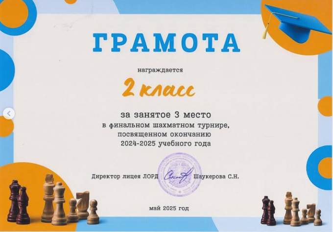 Среди учащихся начальной школы прошел финальный шахматный турнир, посвященный окончанию учебного года. В турнире приняли участие лучшие юные шахматисты каждого класса. Ребята соревновались честно и с большим увлечением, демонстрируя не только знания шахмат, но и умение принимать решения, думать на несколько шагов вперёд. Поздравляем победителей и призеров: