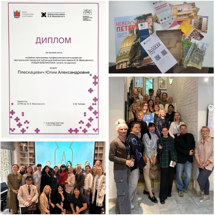 Учитель русского языка и литературы лицея ЛОРД Ю. А. Плескацевич стала участником программы профессионального развития "Наши библиотеки: читать по-русски", которая уже в третий раз прошла в Санкт-Петербурге с 1 по 7 сентября 2025 г.