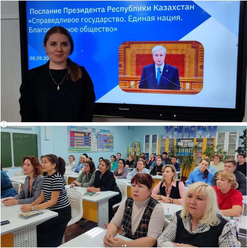 На собрании трудового коллектива педагоги лицея ЛОРД обсудили основные положения ежегодного Послания Президента "Справедливое государство. Единая нация. Благополучное общество". При обсуждении педагоги отметили, что Казахстан шагает в ногу с мировыми трендами, политика государства отвечает вызовам цифрового общества. В Послании отражены близкие каждому педагогу вопросы: качественное образование, межнационального согласие, семейное воспитание.