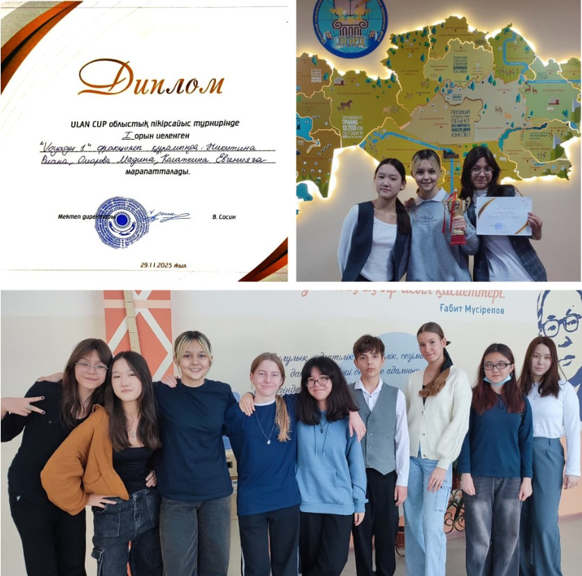 Поздравляем команду лицея в составе: Омарова Мадина, Касаткина Евгения и Никитина Риана с победой на областном дебатном турнире Ulan Cup, который проходил 29 ноября на базе НИШ. В турнире приняли участие ученики 7–9 классов, продемонстрировав высокий уровень подготовки, критического мышления и культуры ведения дискуссии. Наши дебатеры показали себя настоящими интеллектуальными лидерами, сумев убедительно отстоять свои позиции и добиться отличного результата.