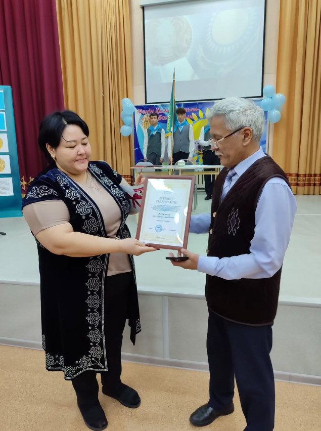 За добросовестный труд, высокий профессионализм и значительный вклад в развитие образования Почётной грамотой Республиканского объединения профсоюзов «Казахстанский отраслевой профессиональный союз работников просвещения, науки и высшего образования был награждён учитель физики Айтжанов Зукарнай Аканович.